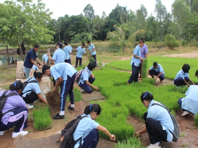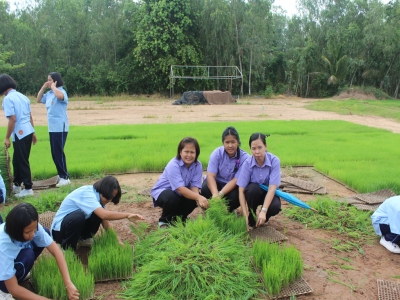หัวข้อข่าว : โรงเรียนดงประคำพิทยายมจัดกิจกรรมโยนกล้าข้าวหอมนิลตามโครงการเศรษฐกิจพอเพียง