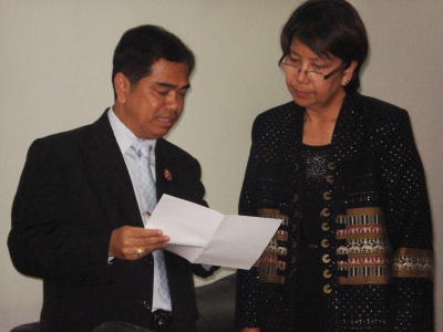 วันพฤหัสบดีที่ 1 กันยายน 2554 เวลาประมาณ 16.00 น. ผู้บริหารการศึกษาขั้นพื้นฐาน ผอ.สพม./ สพป. ประกอบด้วย พิษณุโลก 1 ดร.บุญรักษ์ ยอดเพชร, สพป.พิษณุโลก 2 นายวิวัฒน์ อ้นน่วม ,สพป พิษณุโลก 3 นายสุรินทร์ แก้วมณี และ (สพม.เขต 39 ) รองสุชน วิเชียรสรรค์ ให้การต้อนรับรัฐมนตรีว่าการกระทรวงศึกษาธิการ นายวรวัจน์ เอื้ออภิญญกุล / นางศิริพร กิจเกื้อกูล เลขาธิการคณะกรรมการข้าราชการครูและบุคลากรทางการศึกษา (ก.ค.ศ.) และผู้ตรวจราชการกระทรวงศึกษาธิการ (ดร.เบญจลักษณ์ น้ำฟ้า) ณ ท่าอากาศยานจังหวัดพิษณุโลก ในเวลาดังกล่าว นายสุชน วิเชียรสรรค์ รองผู้อำนวยการสำนักงานเขตพื้นที่การศึกษามัธยมศึกษา เขต 39 รายงานสภาพปัญหาน้ำท่วมโรงเรียนในสังกัด และการดำเนินการช่วยเหลือในเบื้องต้นให้รัฐมนตรีฯ และคณะทราบ ก่อนที่จะเดินทางต่อไปยังจังหวัดแพร่ <ติดตามข่าวในเว็บ สพฐ.> / พรทิพย์ เทศแจ่ม : ภาพ ข่าว