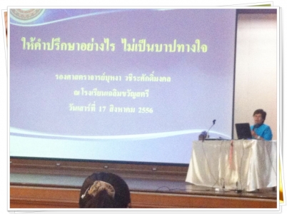 วันที่ 17 สิงหาคม 2556 ฝ่ายบริหารงานวิชาการโรงเรียนเฉลิมขวัญสตรี ได้จัดการอบรมพัฒนาบุคลากรของโรงเรียนเฉลิมขวัญสตรี โดยมีวัตถุประสงค์เพื่อประชุมปฏิบัติการจัดการเรียนการสอนในโรงเรียนมาตรฐานสากล การสอน IS1,IS2 และ IS3 รวมทั้งการนำกระบวนการ 5 ขั้นหรือบันได 5 ขั้น(QSCCS) เข้าหลักสูตรการจัดการเรียนรู้ และศูนย์แนะแนวโรงเรียนเฉลิมขวัญสตรี ได้รับการคัดเลือกให้เป็นศูนย์แนะแนวต้นแบบของสำนักงานเขตพื้นที่การศึกษามัธยมศึกษา เขต 39 โดย นางรัชนีนรินทร์ คลังเงินวรากร รองผู้อำนวยการ เป็นประธานกล่าวเปิดการอบรมและกล่าวให้โอวาทแก่คณะครูและบุคลากร คณะวิทยากรได้รับเกียรติจาก รศ.ดร.บุหงา วชิรศักดิ์มงคล คณะศึกษาศาสตร์ มหาวิทยาลัยนเรศวร ให้ความรู้เรื่องการแนะแนวอย่างไรไม่เป็นบาปทางใจ นางวนิดา ปานสมบัติ ผู้ช่วยผู้อำนวยการกลุ่มงานวิชาการ ให้ความรู้เรื่องกระบวนการ 5 ขั้น (QSCCS)และ ดร.ผกามาศ บุญเผือก ผู้ช่วยผู้อำนวยการกลุ่มงานส่งเสริมวิชาการ ให้ความรู้เรื่องการจัดการเรียนการสอนในโรงเรียนมาตรฐานสากล และการจัดทำแผนการเรียนรู้บูรณาการกระบวนการ 5 ขั้น (QSCCS) ณ หอประชุมราชานุเคราะห์ 3 (ภาพ:อภิญญา,สุนทรี/ข่าว:ประชาสัมพันธ์)
