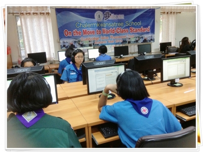 วันที่ 4 กันยายน 2556 ฝ่ายบริหารงานวิชาการโรงเรียนเฉลิมขวัญสตรี โดยคณะครูกลุ่มสาระการเรียนรู้ภาษาต่างประเทศ ครูนงพร เตชนราเดช หัวหน้ากลุ่มสาระการเรียนรู้ภาษาต่างประเทศ พร้อมด้วยคณะครูได้ดำเนินการทดสอบวัดระดับความรู้ภาษาอังกฤษ ให้แก่นักเรียนชั้นมัธยมศึกษาปีที่ 2 จำนวน 3 ห้องเรียนจำนวนนักเรียนทั้งหมด 120 คนตั้งแต่เวลา 08.30-12.00 น. โดยใช้ห้องปฏิบัติการคอมพิวเตอร์ e-Classroom 2 โรงเรียนเฉลิมขวัญสตรี ตามนโยบายของสำนักงานคณะกรรมการการศึกษาขั้นพื้นฐาน สำหรับโรงเรียนในโครงการโรงเรียนมาตรฐานสากลรุ่นที่ 1-2 การทดสอบครั้งนี้ได้รับความร่วมมือจากคณะครูกลุ่มสาระการเรียนรู้ภาษาต่างประเทศควบคุมการทดสอบ และคณะครูกลุ่มสาระการงานอาชีพและเทคโนโลยี (คอมพิวเตอร์) อำนวยความสะดวกด้านการใช้งานโปรแกรม Online ทำให้การทดสอบดำเนินไปด้วยความเรียบร้อย (ภาพ:ข่าว/ประชาสัมพันธ์)