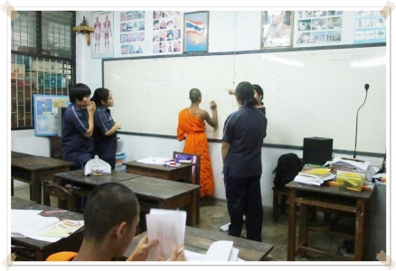วันที่ 25 สิงหาคม 2556 นักเรียนชั้นมัธยมศึกษาปีที่ 6 โรงเรียนเฉลิมขวัญสตรี ได้ร่วมกันบำเพ็ญประโยชน์จิตอาสาในการจัดกิจกรรมแลกเปลี่ยนเรียนรู้ ทบทวน ฝึกทักษะรายวิชาคณิตศาสตร์ให้กับสามเณรวัดธรรมจักรวิทยา(แผนกสามัญ,สังกัดสำนักงานพระพุทธศาสนาแห่งชาติ) วัดธรรมจักร อำเภอเมือง จังหวัดพิษณุโลก โดยครูกีรติ วาณิชยพงศ์ เป็นครูผู้ประสานงานและดูแลนักเรียน การปฏิบัติกิจกรรมดำเนินไปด้วยความเรียบร้อยสามเณรสนใจ ตั้งใจและร่วมแลกเปลี่ยนเรียนรู้ นับว่าเป็นกิจกรรมที่ส่งเสริมการเรียนรู้ได้เป็นอย่างดียิ่ง ขอบคุณคณะครูและนักเรียนที่ร่วมกันบำเพ็ญประโยชน์เพื่อสังคมในครั้งนี้ (ภาพ:กีรติ/ข่าว:ประชาสัมพันธ์)