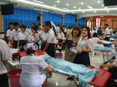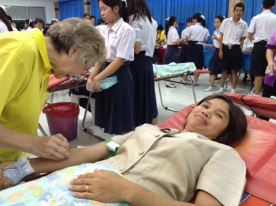 ดร.ช่วยชาติ ตันตระกูล ผู้อำนวยการโรงเรียนจ่านกร้อง เป็นขวัญและกำลังใจให้กับนักเรียนและบุคลากร ในการบริจาคโลหิตโดยเหล่ากาชาดจังหวัดพิษณุโลก เมื่อวันที่ 9 กันยายน 2556 เวลา 08.30-12.00 น. ณ ห้องเทคโนโลยีโรงเรียนจ่านกร้อง สนธยา/ภาพ พรทิพย์/ข่าว
