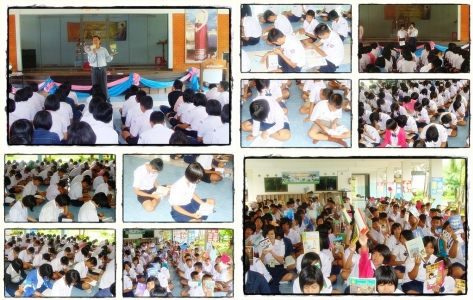 ฝ่ายวิชาการร่วมกับห้องสมุดและครูกลุ่มสาระการเรียนรู้ภาษาไทยโรงเรียนยางโกลนวิทยา จัดทำโครงการส่งเสริมนิสัยรักการอ่านให้กับนักเรียนชั้นมัธยมศึกษาปีที่ 1 - 6 ภาคเรียนที่ 1 ปีการศึกษา 2554 นี้ โดยการจัดกิจกรรม ภาษา...พาทัวร์ มีการดำเนินกิจกรรมโดยจัดทำป้ายคอลัมน์ให้ความรู้ในเรื่องต่างๆ จำนวน 20 คอลัมน์ซึ่งเป็นเรื่องที่น่าสนใจทั้งสิ้น อาทิ นิทาน บทความ สารคดี เรื่องสั้น เรื่องเล่าจากประสบการณ์ ข่าวเหตุการณ์ประจำวัน ขำขัน ข้อคิดคำคม สำนวนไทย เกร็ดเล็กเกร็ดน้อยจากความรู้ทั้ง 8 กลุ่มสาระ ฯลฯ ซี่งหาข้อมูลได้จากหนังสือห้องสมุด จากการค้นคว้าในอินเทอร์เน็ต มาจัดเป็นป้ายให้ความรู้ และนำไปติดไว้ที่บริเวณลานกิจกรรม (ใต้ถุนอาคาร) ซึ่งเป็นศูนย์รวมของนักเรียน เพื่อให้นักเรียนได้อ่านและได้ศึกษาเมื่อมีเวลาว่าง หลังจากนั้นตอนเย็นของทุกวันก่อนนักเรียนกลับบ้านจะมีกิจกรรมตอบปัญหาชิงรางวัล โดยถามคำถามเกี่ยวกับข้อมูลที่นักเรียนได้ศึกษาในแต่ละคอลัมน์ หากนักเรียนคนใดตอบคำถามได้จะมีรางวัลให้เป็นการเสริมกำลังใจและกระตุ้นให้นักเรียนมีนิสัยรักการอ่านเพื่อให้ได้รับความรู้จากสื่อต่างๆ เพิ่มมากขึ้น นอกจากนี้ยังสามารถบูรณาการเข้ากับการเรียนการสอนวิชาภาษาไทยได้หลายกิจกรรม และ กิจกรรมวางทุกงาน...อ่านทุกคน ดำเนินการโดยให้นักเรียนอ่านหนังสือพร้อมกันหลังเลิกแถวเคารพธงชาติเสร็จเรียบร้อยแล้ว ก่อนเข้าเรียนในคาบที่ 1 นักเรียนทุกคนจะนำหนังสือมาเข้าแถวด้วย เมื่อกิจกรรมหน้าเสาธงเสร็จ จะมีเวลาให้นักเรียนอ่านหนังสือ 10 นาที่ ที่บริเวณลานกิจกรรมใต้ถุนอาคาร พร้อมกับบันทึกความรู้ที่นักเรียนได้อ่านลงในสมุดบันทึกรักการอ่าน ผลที่ได้รับจากการจัดกิจกรรมส่งเสริมนิสัยรักการอ่านในครั้งนี้ นักเรียนทุกคนมีความสนใจอ่านความรู้รอบตัวและมีนิสัยรักการอ่านมากขึ้น ภาพ/ข่าว โดย พัชราภรณ์ หยวกยง หัวหน้างานประชาสัมพันธ์โรงเรียนยางโกลนวิทยา