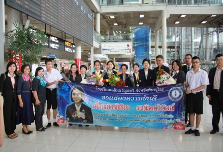 วันที่่ 15 กันยายน 2556 คณะครูโรงเรียนเฉลิมขวัญสตรีพร้อมด้วยครอบครัว "ผาติรงควิวัฒน์"และคณะผู้แทนจาก สอวน.มาร่วมแสดงความยินดีและต้อนรับนักเรียนสุดยอดคนเก่งของเฉลิมขวัญสตรี "เด็กหญิงพัชริยา ผาติรงควิวัฒน์" นักเรียนชั้นมัธยมศึกษาปีที่่ 3.6 โรงเรียนเฉลิมขวัญสตรี ได้รับเหรียญทองแดงจากการเข้าร่วมแข่งขันดาราศาสตร์โอลิมปิกครั้งที่่ 18 ณ ประเทศลิทัวเนีย โดยการกลับมาครั้งนี้นักเรียนที่เป็นตัวแทนของประเทศไทยทั้ง 3 คนได้รับเหรียญมาทุกคนนับว่าเป็นเกียรติประวัติและความภาคภูมิใจแก่นักเรียนไทยเป็นอย่างยิ่ง (ภาพ:วันชัย/ข่าว:ประชาสัมพันธ์)