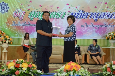 วันที่ 18 กันยายน 2556 เวลา 14.30 น. ณ หอประชุมจันทร์นารี โรงเรียนอุตรดิตถ์ดรุณี ได้จัดพิธีมุทิตาจิตแก่ครูผู้เกษียณอายุราชการ โดยมีคณะผู้บริหาร ครู และบุคลากรโรงเรียน ร่วมพิธี เพื่อเป็นการกล่าวความรู้สึกของครูผู้เกษียณอายุราชการ และรับมอบโล่ประกาศเกียรติคุณ ที่ได้ปฏิบัติหน้าที่เกิดผลดี และเป็นประโยชน์อย่างยิ่งแก่ทางราชการ จนครบเกษียณอายุราชการ ในปีงบประมาณ 2556 ซึ่งนายมนต์ชัย ปาณธูป ผู้อำนวยการโรงเรียนอุตรดิตถ์ดรุณี เป็นผู้มอบ //เครือข่ายประชาสัมพันธ์โรงเรียนอุตรดิตถ์ดรุณี ภาพ:ข่าว