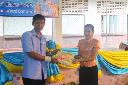 วันพฤหัสบดีที่ 19 กันยายน 2556 นางภคพร สีกา ผู้อำนวยการโรงเรียน พร้อมด้วยคณะครูและศิษย์เก่าร่วมเป็นเกียรติพร้อมมอบของที่ระลึกในงานมุทิตาจิตเกษียณอายุราชการ คุณครูวิหาร ควรสมบัติ ครูชำนาญการ โรงเรียนบ้านน้ำพริก ตำบลยางโกลน อำเภอนครไทย (งานประชาสัมพันธ์โรงเรียน ภาพ : ข่าว)