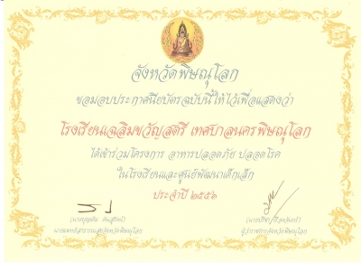 จังหวัดพิษณุโลก ร่วมกับสำนักงานสาธารณสุขจังหวัดพิษณุโลก ได้จัดพิธีมอบเกียรติบัตรแก่โรงเรียนและศูนย์พัฒนาเด็กเล็กที่เข้าร่วมโครงการอาหารปลอดภัย ปลอดโรค ที่ผ่านเกณฑ์คัดเลือกด้วยวิธีการตรวจสอบ,สัมภาษณ์,การตรวจสุขภาพผู้ประกอบการ,การสังเกตจากนักวิชาการสาธารณสุข โรงเรียนเฉลิมขวัญสตรี ได้รับประกาศนียบัตรโรงอาหาปลอดภัย ปลอดโรคโดยนางสิริรัตน์ จีนใจตรง ครู วิทยฐานะชำนาญการพิเศษ หัวหน้างานโภชนาการรับมอบประกาศนียบัตร จากนายบุญทรง แทนธานี นายกเทศมนตรีเทศบาลนครพิษณุโลก เมื่อวันที่ 11 กันยายน 2556 ณ ห้องประชุม สำนักงานเทศบาลนครพิษณุโลก (ภาพ:สิริรัตน์/ข่าว:ประชาสัมพันธ์)