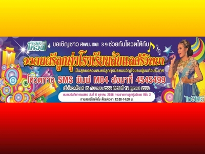 หัวข้อข่าว : 6 ตุลาคม 2556 เวลา 12.00-14.00น. เชิญชมเทปบันทึกการแสดงวงดนตรีลูกทุ่งโรงเรียนลับแลศรีวิทยา ทางรายการลูกทุ่งมัธยม ซีซั่น 2 ช่องไทยไชโย