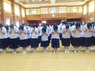 วันที่ 4 ตุลาคม 2556 ครูอภิญญา ม่วงแพร ครูหัวหน้าระดับชั้นมัธยมศึกษาปีที่ 1 จัดกิจกรรมพัฒนาคุณลักษณะอันพึงประสงค์ให้แก่นักเรียนชั้นมัธยมศึกษาปีที่ 1.6,1.7 ณ หอประชุมราชานุเคราะห์ 3 กิจกรรมครั้งนี้จัดขึ้นเพื่อพัฒนาและส่งเสริมคุณลักษณะอันพึงประสงค์ของนักเรียนตามหลักสูตรการศึกษาขั้นพื้นฐาน มุ่งหวังให้นักเรียนเป็นบุคคลที่พึงประสงค์และสามารถดำรงชีวิตอยู่ในสังคมได้อย่างมีความสุข (ภาพ:อภิญญา/ข่าว:ประชาสัมพันธ์)