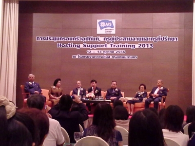 วันที่่ 12-13 ตุลาคม 2556 ครูนงพร เตชนราเดช หัวหน้ากลุ่มสาระการเรียนรู้ภาษาต่างประเทศ โรงเรียนเฉลิมขวัญสตรี ผู้ประสานงาน AFS เขตจังหวัดพิษณุโลก พร้อมด้วยครูวันเพ็ญ ม่วงสีเมืองดี ครูที่ปรึกษานักเรียนโครงการ AFS ได้เข้าร่วมประชุมครอบครัวอุปถัมภ์ ครูผู้ประสานงานและครูที่ปรึกษา Hosting Support Training 2013 ณ โรงแรมรามาการ์เด้นท์ กรุงเทพฯ (ภาพ:วันเพ็ญ/ข่าว:ประชาสัมพันธ์)