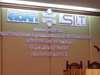 วันที่ 13-15 ตุลาคม 2556 ครูปรางค์ทอง แทบศรี กลุ่มสาระการเรียนรู้คณิตศาสตร์,ครูสุภัค ฟักเงิน กลุ่มสาระการเรียนรู้วิทยาศาสตร์โรงเรียนเฉลิมขวัญสตรี เข้าร่วมประชุมปฏิบัติการการพัฒนาศักยภาพครูในการสอนคณิตศาสตร์ โดยใช้ภาษาอังกฤษ ระดับมัธยมศึกษาตอนต้น รุ่นที่ 2 ณ โรงแรมเอเชีย กรุงเทพมหานคร จัดโดยสมาคมครูวิทยาศาสตร์ คณิตศาสตร์และเทคโนโลยีแห่งประเทศไทย (ภาพ:ปรางค์ทอง/ข่าว:ประชาสัมพันธ์)