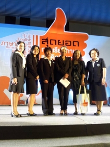 วันที่ 30 ตุลาคม 2556 ฝ่ายบริหารงานวิชาการโรงเรียนเฉลิมขวัญสตรี มอบหมายให้ครูกอบแก้ว ยลพันธ์ กลุ่มสาระการเรียนรู้ภาษาต่างประเทศ,ครูเพ็ญจันทร์ โชติรัตนศักดิ์ กลุ่มสาระการเรียนรู้วิทยาศาสตร์,ครูศิริวรรณ ฉิมแย้ม กลุ่มสาระการเรียนรู้ภาษาไทย,ครูปรางค์ทอง แทบศรี กลุ่มสาระการเรียนรู้คณิตศาสตร์ เข้าร่วมการประกวดสื่อการสอนเพื่อส่งเสริมทักษะการอ่าน การเขียน และการคิดวิเคราะห์ในงาน "สุดยอดการเรียนภาษาและคิดวิเคราะห์" จัดขึ้นโดยสำนักความสัมพันธ์ต่างประเทศ สำนักงานปลัดกระทรวงศึกษาธิการ ณ โรงแรมเซ็นทาราแกรนด์ แอท เซ็นทรัลเวิร์ล กรุงเทพฯ ส่วนผลการประกวดนั้นคณะกรรมการจะแจ้งให้ทราบในลำดับต่อไป(ภาพ:กอบแก้ว/ข่าว:ประชาสัมพันธ์)
