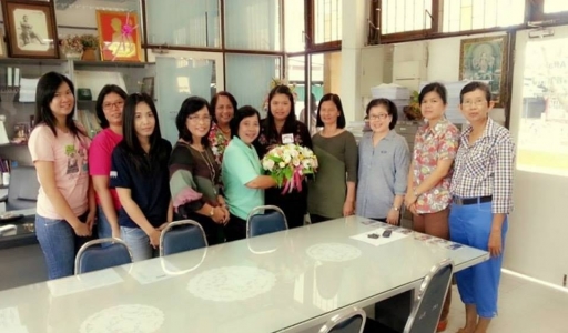 วันที่ 21 ตุลาคม 2556 คณะครูกลุ่มงานวิชาการโรงเรียนเฉลิมขวัญสตรี โดยนางวนิดา ปานสมบัติ ผู้ช่วยผู้อำนวยการกลุ่มงานวิชาการมอบช่อดอกไม้แสดงความยินดีกับ ดร.จิราพร เอมเอี่ยม ในโอกาสที่ย้ายมาดำรงตำแหน่งรองผู้อำนวยการฝ่ายบริหารงานวิชาการ ณ ห้องวิชาการโรงเรียนเฉลิมขวัญสตรี (ภาพ:ประภา/ข่าว:ประชาสัมพันธ์)