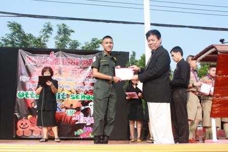 กลุ่มสาระการเรียนรู้ภาษาต่างประเทศ โรงเรียนอุตรดิตถ์ ได้ส่งนักเรียนเข้าร่วมโครงการทดสอบวัดความสามารถทางวิชาการภาษาอังกฤษ ครั้งที่ 12 บริษัทท็อปเทสท์ เซ็นเตอร์ จำกัด ได้รับรางวัลดังนี้ ระดับชั้นมัธยมศึกษาปีที่ 1 เด็กชายฉันทวัฒน์ กิจชัยเจริญ และเด็กชาย สรวิชญ์ พัฒนพรกุล ลำดับที่ 1 ของจังหวัด พร้อมใบประกาศเกียรติคุณ ระดับชั้นมัธยมศึกษาปีที่ 2 เด็กชายผลบุญ เกิดมั่น ลำดับที่ 1 ของจังหวัด พร้อมใบประกาศเกียรติคุณ ระดับชั้นมัธยมศึกษาปีที่ 3 เด็กชายศุภโชค ชูพาณิชสกุล ลำดับที่ 1 ของจังหวัด พร้อมใบประกาศเกียรติคุณ ระดับชั้นมัธยมศึกษาปีที่ 4 นายนัทธพงศ์ สุวรรณปากแพรก ลำดับที่ 1 ของจังหวัด พร้อมใบประกาศเกียรติคุณ ระดับชั้นมัธยมศึกษาปีที่ 5 นายคณินพิชญ์ พุทธอินทรา ลำดับที่ 1 ของจังหวัด พร้อมใบประกาศเกียรติคุณ และลำดับที่ 2 ของประเทศ พร้อมเงิน ทุนการศึกษา 2000 บาทพร้อมเหรียญรางวัลและใบประกาศเกียรติคุณ ระดับชั้นมัธยมศึกษาปีที่ 6 นายพิสิฐ หรรษไพบูลย์ ลำดับที่ 1 ของจังหวัด พร้อมใบประกาศเกียรติคุณ โดยมีนายนเรศ ศรีภิรมย์ ผู้อำนวยการโรงเรียนอุตรดิตถ์ เป็นประธานในพิธีมอบ เกียรติบัตร เมื่อวันที่ 31 ตุลาคม 2556 บริเวณหน้าเสาธง โรงเรียนอุตรดิตถ์ (ประชาสัมพันธ์โรงเรียนอุตรดิตถ์ : ภาพ/ข่าว)