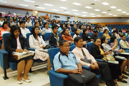 เวลา 9.30 น. (2 มิ.ย.54) รศ.ดร.ชยันต์ บุณยรักษ์ คณบดีคณะวิทยาศาสตร์ มหาวิทยาลัยนเรศวร เป็นประธานเปิดการอบรมหลักสูตรวิทยาศาสตร์และเทคโนโลยีล้ำยุค ให้แก่ครูวิทยาศาสตร์ที่สอนระดับ ม.ปลาย ในสังกัด สพม. 39 (จ.พิษณุโลก) และครูจังหวัดสุโขทัย โดยมีนายสุชน วิเชียรสรรค์ รอง ผอ.สพม.เขต 39 เข้าร่วมพิธีเปิดการอบรมในวันดังกล่าว ...นายสุทัศน์ อู่ศิริจันทร์ ผอ.สำนักส่งเสริมและถ่ายทอดเทคโนโลยี สำนักงานปลัดกระทรวงวิทยาศาสตร์และเทคโนโลยี กล่าวรายงานวัตถุประสงค์ในการจัดอบรม ณ ห้องประชุมอาคารเรียนรวม SC1 311 คณะวิทยาศาสตร์ ซึ่งเป็นการสนับสนุนระหว่างกระทรวงศึกษาธิการและ กระทรวงวิทยาศาสตร์และเทคโนโลยี .....การอบรมครูวิทยาศาสตร์ ในหัวข้อ วิทยาศาสตร์และเทคโนโลยีล้ำยุคประจำปี 2554 จัดขึ้นระหว่างวันที่ 2 - 4 มิถุนายน 2554 เพื่อให้ครูที่สอนวิชาทางวิทยาศาสตร์มีความรู้ ความเข้าใจ และการกระตุ้นให้ครูทางด้านวิทยาศาสตร์ นำความรู้และเทคโนโลยีที่ทันสมัยไปพัฒนาศักยภาพด้านกระบวนการวิทยาศาสตร์ของนักเรียน เพราะการเปลี่ยนแปลงทางด้านเศรษฐกิจ สังคม และวัฒนธรรมในโลกยุคปัจจุบัน ครูจำเป็นต้องปรับเปลี่ยนพัฒนาและศึกษาหาความรู้เพื่อที่จะสามารถหาคำตอบ ทฤษฎี และองค์ความรู้ใหม่ ๆ ขึ้นมาให้ได้ ทั้ง 2 กระทรวงฯ ได้เห็นความสำคัญ จึงหาแนวทางที่ทำให้ครูสามารถพัฒนาแนวทางในการจัดการเรียนการสอนทางวิทยาศาสตร์ที่มีคุณภาพในอนาคต คณะวิทยาศาสตร์ ม.นเรศวร จึงได้จัดโครงการฯ กลุ่มเป้าหมายจำนวน 174 คนที่เข้าอบรมครั้งนี้ มาจากครูผู้สอนวิทยาศาสตร์ระดับมัธยมศึกษาตอนปลายจากจังหวัดพิษณุโลก และจังหวัดสุโขทัย < ขอบคุณข้อมูลจาก คณะวิทยาศาสตร์ ม.นเรศวร > / พิริยะดา : ภาพ , พรทิพย์ : ข่าว // ติดตามข่าวเพิ่มเติมในเว็บไซต์ สพฐ./ ภาคเหนือ ( www.obec.go.th)