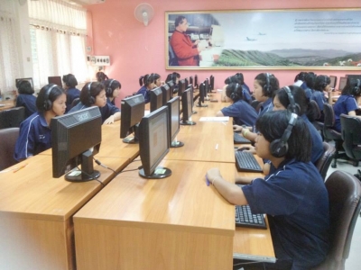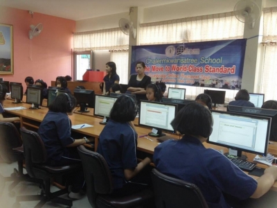 วันที่ 15 พฤศจิกายน 2556 ครูนงพร เตชนราเดช หัวหน้ากลุ่มสาระการเรียนรู้ภาษาต่างประเทศโรงเรียนเฉลิมขวัญสตรีพร้อมด้วยคณะครู ดำเนินการทดสอบวัดระดับความรู้ภาษาอังกฤษให้แก่นักเรียนชั้นมัธยมศึกษาปีที่ 2 ตามโครงการยกระดับผลสัมฤทธิ์ทางการเรียนและนำผลการทดสอบไปปรับกระบวนการจัดการเรียนการสอน วันนี้จัดทดสอบให้กับนักเรียนทุกคนจำนวน 8 ห้องเรียนจำนวน 397 คนตั้งแต่เวลา 08.30-16.00 น. ณ ห้องปฏิบัติการคอมพิวเตอร์ e-Classroom 2 โรงเรียนเฉลิมขวัญสตรี ได้รับความร่วมมือจากคณะครูกลุ่มสาระการเรียนรู้ภาษาต่างประเทศควบคุมการทดสอบ และคณะครูกลุ่มสาระการงานอาชีพและเทคโนโลยี (คอมพิวเตอร์) อำนวยความสะดวกด้านการใช้งานโปรแกรม Online ทำให้การทดสอบดำเนินไปด้วยความเรียบร้อย (ภาพ:ข่าว/ประชาสัมพันธ์)