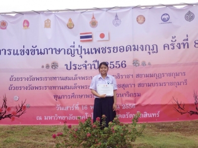 วันที่่ 16 พฤศจิกายน 2556 โครงการพัฒนาทักษะภาษาญี่ปุ่นโรงเรียนเฉลิมขวัญสตรี ครูลลนา ปลั่งศรีรัตน์ นำนักเรียนเข้าร่วมแข่งขันภาษาญี่ปุ่นเพชรยอดมงกุฏ ครั้งที่ 8 ณ มหาวิทยาลัยเทคโนโลยีราชมงคลรัตนโกสินทร์ จังหวัดนครปฐมได้รับรางวัลดังนี้ 1. เด็กหญิงบุญรักษา เส็งทอง นักเรียนชั้นมัธยมศึกษาปีที่่ 2.7 ได้รับรางวัลชมเชย ได้อันดับที่ 27 จากผู้เข้าสอบ 116 คนรับเกียรติบัตรพร้อมเหรียญที่ระลึกจากมูลนิธิร่มฉัตรและทุนการศึกษา 1,000 บาท 2. นางสาวศุทธหทัย ชมหอม นักเรียนชั้นมัธยมศึกษาปีที่ 6.1 ได้ลำดับที่ 57 จากผู้เข้าสอบ 1,085 คนทั่วประเทศได้รับรางวัลผ่านเกณฑ์รับเกียรติบัตร 3. นางสาวภูสุดา ภู่แส นักเรียนชั้นมัธยมศึกษาปีที่่ 6.8 ได้ลำดับที่่ 67 จากผู้เข้าสอบ 1,085 คนทั่วประเทศได้รับรางวัลผ่านเกณฑ์รับเกียรติบัตร คณะครูและนักเรียนโรงเรียนเฉลิมขวัญสตรีขอแสดงความชื่นชมยินดีมา ณ โอกาสนี้ ขอเป็นกำลังใจให้กับนักเรียนที่เข้ารับการทดสอบครั้งนี้ทุกคนถือว่าเป็นประสบการณ์อันล้ำค่าสำหรับการเรียนรู้ทักษะภาษาญี่ปุ่นขอบคุณคณะครูโครงการพัฒนาทักษะภาษาญี่ปุ่นทุกท่านที่ได้ส่งเสริมสนับสนุนให้กำลังใจนักเรียนมาโดยตลอด(ภาพ:ลลนา/ข่าว:ประชาสัมพันธ์)