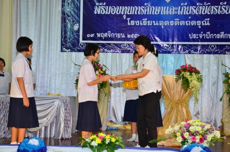 วันที่ 19 พฤศจิกายน 2556 นายมนต์ชัย ปาณธูป ผู้อำนวยการโรงเรียนอุตรดิตถ์ดรุณี ประธานในพิธีมอบทุนการศึกษาและเีกียรติบัตรเรียนดี ปีการศึกษา 2556 ซึ่งได้รับเกียรติจาก นายกสมาคมผู้ปกครองและครูฯ นายกสมาคมศิษย์เก่าฯ ผู้ปกครอง และเจ้าของกองทุน ร่วมเป็นเกียรติ และมอบทุนการศึกษาให้กับนักเรียนที่ขาดแคลนทุนทรัพย์ //เครือข่ายประชาสัมพันธ์โรงเรียนอุตรดิตถ์ดรุณี ภาพ:ข่าว