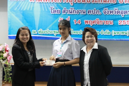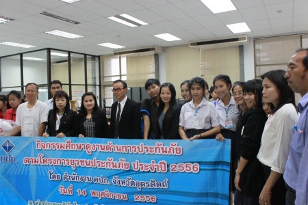 วันที่ 14 พฤศจิกายน 2556 โครงการยุวชนประกันภัย โรงเรียนเตรียมอุดมศึกษาน้อมเกล้า อุตรดิตถ์ ร่วมศึกษาดูงานด้านการประกันภัยตามโครงการยุวชนประกันภัย ประจำปี 2556 ณ ห้องประชุมบริษัท ไทยประกันชีวิต จำกัด (มหาชน) สาขาอุตรดิตถ์