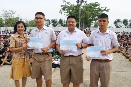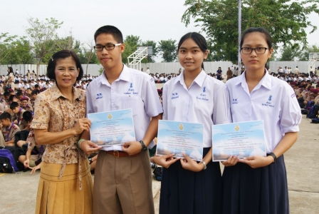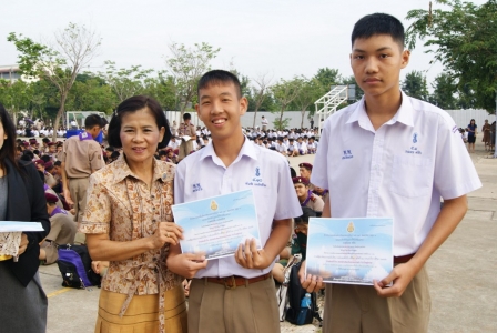 วันที่ ๒๕ พฤศจิกายน ๒๕๕๖ นางเพิ่มศรี เมฆสวัสดิ์ รองผู้อำนวยการ กลุ่มบริหารงานวิชาการ เป็นประธานมอบเกียรติบัตรแก่นักเรียนที่เข้าร่วมการแข่งขันทักษะงานศิลปหัตถกรรมนักเรียน (คอมพิวเตอร์) ระดับเขตพื้นที่การศึกษา ประจำปีการศึกษา ๒๕๕๖ ดังนี้ ๑. รางวัลรองชนะเลิศ อันดับ ๒ เหรียญทอง การสร้างการ์ตูนแอนิเมชั่น (2D Animation) ระดับชั้น ม. ๑ ๓ ๑.๑ เด็กชายณัชพงศ์ รัตนสำเนียง ๑.๒ นายณัฐธนาวุฒิ สุขดี ๒. รางวัลรองชนะเลิศ อันดับ ๒ เหรียญทอง การออกแบบสิ่งของเครื่องใช้ด้วยโปรแกรมคอมพิวเตอร์ ระดับชั้น ม.๑ ๓ ๒.๑ เด็กชายณัฐวัฒน์ จันทร์วิสิทธิ์ ๒.๒ เด็กชายศุภกรณ์ แสงสว่าง ๓. รางวัลชนะเลิศ เหรียญทอง การออกแบบสิ่งของเครื่องใช้ด้วยโปรแกรมคอมพิวเตอร์ ระดับชั้น ม.๔ ๖ ๓.๑ นายชโนทัย เอกสิทธิโชค ๓.๒ นายธนเดช ศรียัง ๔. รางวัลรองชนะเลิศ อันดับ ๑ เหรียญทอง การสร้างเกมสร้างสรรค์จากคอมพิวเตอร์ ระดับชั้น ม.๑ ๓ ๔.๑ เด็กชายกฤษฎา วงค์ไชยา ๔.๒ เด็กชายศักดิธัช โสภณ ๕. รางวัลรองชนะเลิศ อันดับ ๑ เหรียญทอง การสร้างหนังสืออิเล็กทรอนิกส์ (e-book) ระดับชั้น ม.๑ ๓ ๕.๑ เด็กชายนิจณภัทร พลตรี ๕.๒ เด็กชายธนชัย ระเวกโฉม ๖. รางวัลรองชนะเลิศ อันดับ ๒ เหรียญทอง การโปรแกรมด้วยภาษาคอมพิวเตอร์ ระดับชั้น ม.๔ ๖ ๖.๑ นายชญานิน เสือทัพ ๖.๒ นายสุปัณฑิต พลกันยิ้ม ๗. รางวัลรองชนะเลิศ อันดับ ๑ เหรียญทอง การประกวดโครงงานคอมพิวเตอร์ประเภทซอฟต์แวร์ ระดับชั้น ม.๑ ๓ ๗.๑ เด็กชายสุภิรัฐพงศ์ พงศ์ศักดิ์ศรี ๗.๒ เด็กชายณัฐดนัย เพ็ชรหิน ๗.๓ เด็กชายสรรเพชญ พะโยม ๘. รางวัลชนะเลิศ เหรียญทอง การประกวดโครงงานคอมพิวเตอร์ประเภทซอฟต์แวร์ ระดับชั้น ม.๔ ๖ ๘.๑ นายกานต์เมธา จันทาป ๘.๒ นางสาวศิวาพร สังข์เทศ ๘.๓ นางสาวธิดารัตน์ ลอยถาวร ๙. รางวัลรองชนะเลิศ อันดับ ๑ เหรียญทอง การตัดต่อภาพยนตร์ ระดับชั้น ม.๔ ๖ ๙.๑ นายยุทธนากร สินทร ๙.๒ นางสาววชิระญาณ์ มณีโชต ๑๐. รางวัลชนะเลิศ เหรียญทอง การแข่งขันหุ่นยนต์บังคับมือ ระดับชั้น ม.๑ ๓ ๗.๑ เด็กชายธนภัทร หนูสุก ๗.๒ เด็กชายรังสิมันต์ กุลเพชรจิระ ๗.๓ เด็กชายศุภวิชญ์ นาสเงี่ยม ๑๑. รางวัลชนะเลิศ เหรียญทอง การแข่งขันหุ่นยนต์บังคับมือ ระดับชั้น ม.๔ ๖ ๘.๑ นายประเมศฐ์ ถิระสินสมบูรณ์ ๘.๒ นายศิรพงศ์ ภู่สวรรค์ ๘.๓ นายอมรเทพ นามวงศ์