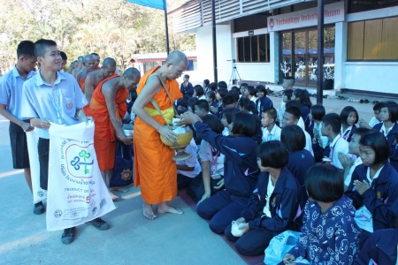 วันที่ 2 ธันวาคม 2556 โรงเรียนเตรียมอุดมศึกษาน้อมเกล้า อุตรดิตถ์ จัดพิธีตักบาตรข้าวสารอาหารแห้ง โดยมีนักเรียนที่เข้าร่วมอบรมโครงการส่งเสริมคุณธรรมจริยธรรม กิจกรรมการประชุมเชิงปฏิบัติการโรงเรียนในฝัน ณ ลานฟ้า โรงเรียนเตรียมอุดมศึกษาน้อมเกล้า อุตรดิตถ์