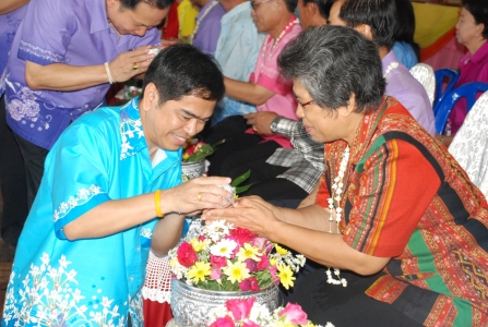 วันที่ ๑๑ เม.ย. ๒๕๕๔ ดร.สมเกียรติ บุญรอด ผอ.สพม.เขต ๓๙ (พิษณุโลก , อุตรดิตถ์) เป็นประธานในการเปิดงาน สืบสานสร้างสรรค์วันสงกรานต์ รดน้ำขอพร ณ หอประชุมโรงเรียนพุทธชินราชพิทยา ซึ่งจัดโดย สมาคมผู้ประกอบวิชาชีพบริหารการศึกษาขั้นพื้นฐานระดับมัธยม จังหวัดพิษณุโลก โดยมี นายเดชา สมบูรณ์พงษ์กิจ นายกสมาคมฯ และผู้อำนวยการโรงเรียนบางกระทุ่มพิทยาคม กล่าวรายงาน ดร.สมเกียรติ เปิดเผยว่า การจัดงานดังกล่าวมุ่งหวังให้ข้าราชการครูได้สืบสานร่วมอนุรักษ์ประเพณีปีใหม่ไทย(สงกรานต์)ให้ดำรงอยู่สืบไป และจะจัดงานแบบนี้ทุกๆ ปี โดยเชิญข้าราชการครูอาวุโสมาเป็นเกียรติให้ครูรุ่นหลังได้รดน้ำขอพร สำหรับงานปีนี้มีคณะผู้บริหารสถานศึกษา ข้าราชการครูและบุคลากรทางการศึกษา ให้ความสำคัญและเข้าร่วมงานกันอย่างคับคั่ง หลังจากเสร็จสิ้นพิธีการรดน้ำดำหัว นางถนัด มุกดาลอย ตัวแทนผู้อาวุโส ข้าราชการบำนาญ อดีตผู้อำนวยการโรงเรียนเฉลิมขวัญสตรี กล่าวให้ข้อคิดในการทำงาน และขอบคุณทุกคนที่ช่วยกันสืบสานประเพณีมาอย่างต่อเนื่อง เพราะเป็นประเพณีที่ดีงาม ขออวยพรให้ทุกคนมีความสุขในเทศกาลปีใหม่ไทย(สงกรานต์) ทิ้งท้ายว่าจะดูแลสุขภาพตนให้แข็งแรงเพื่อมาร่วมงานแบบนี้จนถึงอายุ 90 ปี /พิริยะดา แก้วมา : ภาพ /พรทิพย์ เทศแจ่ม: ข่าว