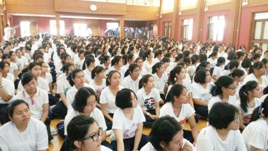 วันที่ 11 ธันวาคม 2556 นักเรียนชั้นมัธยมศึกษาปีที่ 5 เข้าร่วมโครงการส่งเสริมคุณธรรมจริยธรรมประจำปีการศึกษา 2556 ณ หอประชุมราชานุเคราะห์ 3 เพื่อปลูกฝังค่านิยมที่ดีงามและคุณลักษณะอันพึงประสงค์ตามหลักสูตรสถานศึกษาขั้นพื้นฐาน มีคณะครูกลุ่มงานบุคลากรและคณะครูที่ปรึกษาให้กำลังใจและดูแลนักเรียนอย่างใกล้ชิด (ภาพ:วรรณภา,พรพิมล,อดิเรก/ข่าว:ประชาสัมพันธ์)