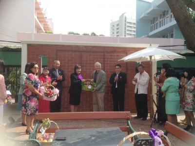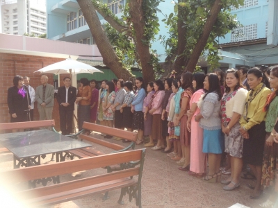วันที่่ 27 ธันวาคม 2556 ดร.จิตราภรณ์ ใยศิลป์ ผู้อำนวยการโรงเรียนเฉลิมขวัญสตรีพร้อมคณะครู ร่วมอำนวยพรปีใหม่แด่ นายสมพงศ์ อรุณโรจน์ปัญญา ผู้ตรวจราชการกระทรวงมหาดไทย ประธานคณะกรรมการสถานศึกษาขั้นพื้นฐาน โรงเรียนเฉลิมขวัญสตรี,นายวิโรจน์ จิรัฐิติกาลโชติ นายกสมาคมครูผู้ปกครองโรงเรียนเฉลิมขวัญสตรี,นายสมศักดิ์ พุ่มสลุด ประธานชมรมร่มสัตบรรณครูเฉลิมขวัญสตรี ณ บริเวณลานพิกุลโรงเรียนเฉลิมขวัญสตรี (ภาพ:ข่าว/ประชาสัมพันธ์)