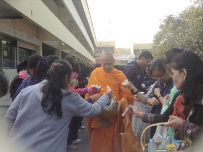 วันที่่ 27 ธันวาคม 2556 ดร.จิตราภรณ์ ใยศิลป์ ผู้อำนวยการโรงเรียนเฉลิมขวัญสตรี พร้อมด้วยคณะครู บุคลากรและนักเรียนร่วมกันตักบาตรข้าวสารอาหารแห้งถวายแด่พระภิกษุสงฆ์ เนื่องในเทศกาลส่งท้ายปีเก่าต้อนรับปีใหม่ ณ สนามหน้าเสาธงและบริเวณหน้าโรงอาหาร กิจกรรมวันนี้คณะครู บุคลากรและนักเรียนได้ร่วมอนุโมทนาบุญด้วยกันอย่างมีความสุข (ภาพ:กีรติ,ศิริรัตน์/ข่าว:ประชาสัมพันธ์)