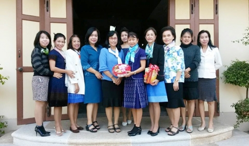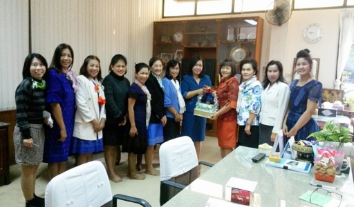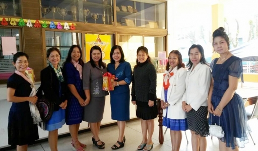 คณะครูกลุ่มสาระการเรียนรู้ต่างๆ ร่วมอำนวยพรปีใหม่ 2557 แด่ ดร.จิตราภรณ์ ใยศิลปฺ์ ผู้อนวยการโรงเรียนเฉลิมขวัญศตรี รองผู้อำนวยการ หัวหน้ากลุ่ม/งาน กลุ่มสาระการเรียนรู้ต่าง ๆ เพื่อส่งความสุขและความปรารถนาดีต่อกันเนื่องในโอกาสวันขึ้นปีใหม่ (ภาพ:ศิริรัตน์/ข่าว:ประชาสัมพันธ์)