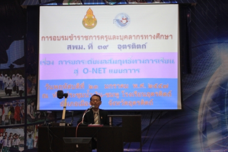 วันที่ 23 มกราคม 2557 สำนักงานเขตพื้นที่การศึกษามัธยมศึกษา เขต 39 โดยเครือข่ายส่งเสริมประสิทธิภาพการจัดการศึกษามัธยมศึกษาจังหวัดอุตรดิตถ์ จัดอบรมพัฒนาครูและบุคลากรทางการศึกษา (ระดับมัธยมศึกษา) เรื่อง การยกระดับผลสัมฤทธิ์ทางการเรียน (O-Net) แบบถาวร โดยได้เชิญ อาจารย์โกมินทร์ สังคะนอง จากสถาบันพัฒนาคุณภาพวิชาการ (พว.) มาเป็นวิทยากรบรรยาย ณ หอประชุมน้ำเงินชมพู โรงเรียนอุตรดิตถ์