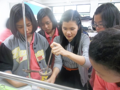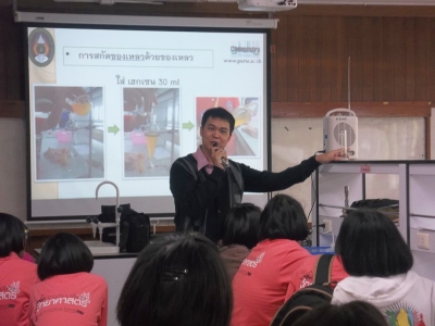 วันที่่ 25 มกราคม 2556 คณะครูกลุ่มสาระการเรียนรู้วิทยาศาสตร์ โดยครูศรีจันทร์ กลิ่นรอด หัวหน้ากลุ่มสาระการเรียนรู้วิทยาศาสตร์ พร้อมด้วยครูเสาวคนธ์ คุ้มปากพิง ครูนงเยาว์ ประสงค์ นำนักเรียนช้้นมัธยมศึกษาปีที่่ 1 โครงการห้องเรียนพิเศษวิทยาศาสตร์ จัดกิจกรรมค่ายฝึกทักษะปฏิบัติการทางด้านวิทยาศาสตร์ ณ ห้องปฏิบัติการเคมี คณะวิทยาศาสตร์ มหาวิทยาลัยราชภัฎพิบูลสงคราม (ฝั่งทะเลแก้ว) กิจกรรมครั้งนี้นักเรียนได้ฝึกปฏิบัติการจากคณะวิทยากรที่มีความรู้ความสามารถเฉพาะทาง พร้อมกับผลงานที่สร้างสรรค์จากฝีมือของนักเรียนเพื่อเป็นของฝากสำหรับผู้ปกครอง ในนามของคณะครูและนักเรียนโรงเรียนเฉลิมขวัญสตรี ขอขอบคุณคณะวิทยากรทุกท่านที่เสียสละเวลาให้ความรู้กับนักเรียนของเราครั้งนี้ (ภาพ:เสาวคนธ์/ข่าว:ประชาสัมพันธ์)