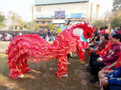 วันที่่ 29 มกราคม 2557 คณะครูกลุ่มสาระการเรียนรู้ภาษาต่างประเทศโรงเรียนเฉลิมขวัญสตรี โดยโครงการพัฒนาทักษะภาษาจีน จัดกิจกรรมเทศกาลตรุษจีน เพื่อให้นักเรียนได้เรียนรู้วัฒนธรรมจีน โดยมี ดร.จิตราภรณ์ ใยศิลป์ ผู้อำนวยการโรงเรียน เป็นประธานในพิธี กิจกรรมประกอบด้วย การเชิดสิงโตของนักเรียนชายที่เลือกเรียนภาษาจีน การแสดงของนักเรียน การทำเกี๊ยวจีน การแข่งขันสุดยอดตือโป๊ยก่าย ภายในบริเวณงานมีขนมเข่ง ขนมเทียนและส้มแจกคณะครูและแขกที่มาร่วมงาน กิจกรรมครั้งนี้นักเรียนได้เรียนรู้วัฒนธรรมจีนด้วยความสนุกสนาน (ภาพ:ศิริรัตน์,อาทิตยา/ข่าว:ประชาสัมพันธ์)