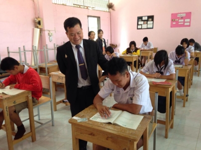นายสุดเขต สวยสม รองผู้อำนวยสำนักงานเขตพื้นที่การศึกษามัธยมศึกษาเขต 39 ตรวจเยี่ยมและให้ขวัญกำลังใจแก่นักเรียน ณ สนามสอบโอเน็ตโรงเรียนชาติตระการวิทยา ที่จัดสอบระหว่างวันที่ี 8-9 กุมภาพันธ์ พ.ศ.2557