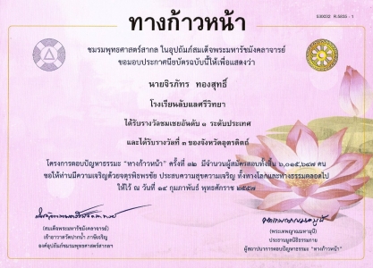 หัวข้อข่าว : ครูโรงเรียนลับแลศรีวิทยา คว้ารางวัลชมเชยอันดับ 1 ระดับประเทศ โครงการตอบปัญหาธรรมะ