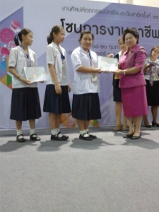 เด็กหญิงฉัตรชนก จารุพันธ์จรัสศรี,เด็กหญิงนันท์นภัส อมรวิวัฒน์พงศ์,เด็กหญิงวรรณภา วงศ์สิริเศรษฐ์ นักเรียนชั้นมัธยมศึกษาปีที่ 2.4 โรงเรียนเฉลิมขวัญสตรี ชนะเลิศ เหรียญทอง 97.4 คะแนน จากการแข่งขันทำแกงมัสมั่น ม.1-ม.3 งานศิลปหัตถกรรมนักเรียน ระดับชาติ ครั้งที่ 63 ปีการศึกษา 2556 ณ อาคารชาเลนเจอร์ 1-3 อิมแพคเมืองทองธานี โดยมีครูวีระวรรณ์ สาละวรรณ,ครูสิริรัตน์ จีนใจตรง,ครูฉวีวรรณ ศรีนาง เป็นครูที่ฝึกซ้อม นับเป็นเกียรติประวัติและความภาคภูมิใจแก่พวกเราชาวเฉลิมขวัญสตรีทุกคน ขอแสดงความชื่นชมยินดีมา ณ โอกาสนี้ (ภาพ:วนิดา/ข่าว:ประชาสัมพันธ์)