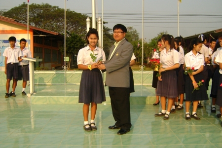 หัวข้อข่าว : แสดงความยินดีกับนักเรียน ม.6 และครูจีนกล่าวอำลาหน้าเสาธง