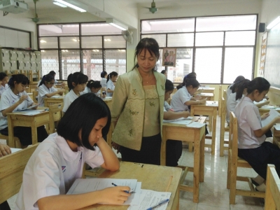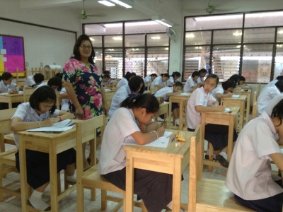 วันเสาร์ที่่ 1 มีนาคม 2557 ฝ่ายบริหารงานโรงเรียนเฉลิมขวัญสตรี ได้ดำเนินการสอบคัดเลือกนักเรียนเข้าศึกษาต่อชั้นมัธยมศึกษาปีที่่ 1 ประจำปีการศึกษา 2557 โครงการห้องเรียนพิเศษสำหรับในเช้าวันนี้ได้จัดให้นักเรียนร่วมพิธีเคารพธงชาติ สวดมนต์ แผ่แม่ตา หลังจากนั้นดร.จิตราภรณ์ ใยศิลป์ ผู้อำนวยการโรงเรียนเฉลิมขวัญสตรี ได้พบนักเรียนพร้อมทั้งชี้แจงนโยบายการสอบคัดเลือกสำหรับนักเรียนโครงการห้องเรียนพิเศษ,ดร.จิราภรณ์ เอมเอี่ยม รองผู้อำนวยการฝ่ายบริหารงานวิชาการ ชี้แจงข้อปฏิบ้ติในการทำแบบทดสอบ และแยกย้ายเข้าห้องสอบโดยมีครูผู้คุมสอบ นำนักเรียนเข้าห้องสอบ บรรยากาศการสอบดำเนินไปด้วยความเรียบร้อย (ภาพ/ข่าว:ประชาสัมพันธ์)