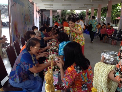 วันที่่ 8 เมษายน 2557 คณะครูโรงเรียนเฉลิมขวัญสตรี ร่วมกันสืบสานความผูกพัน ประเพณีสงกรานต์ 2557 ได้รับเกียรติจาก ผอ.ถนัด มุกดาลอย อดีตผู้อำนวยการโรงเรียนเฉลิมขวัญสตรี ให้เกียรติเป็นประธานในพิธีรดน้ำดำหัวคณะผู้บริหาร คณะครูอาวุโส ประกอบด้วย ผอ.ประสพศรี เตมียบุตร,ผอ.เพ็ญศรี พืชพันธุ์ และอดีตคณะครูทุกท่านที่ได้ให้เกียรติมาร่วมเป็นขวัญและกำลังใจแก่คณะครู นักเรียนโรงเรียนเฉลิมขวัญสตรีในวันนี้ ขออาราธนาคุณพระศรีรัตนตรัยและสิ่งศักดิ์สิทธิ์ทั้งหลายในสากลโลก โปรดดลบันดาลให้ท่านและครอบครัวมีสุขภาพแข็งแรง เจริญรุ่งเรืองด้วยจตุรพิธพรชัยตลอดไปเทอญ (ภาพ:ศิริรัตน์,ประภา,เรณู,สานิลัช/ข่าว:ประชาสัมพันธ์)