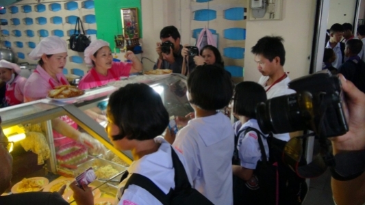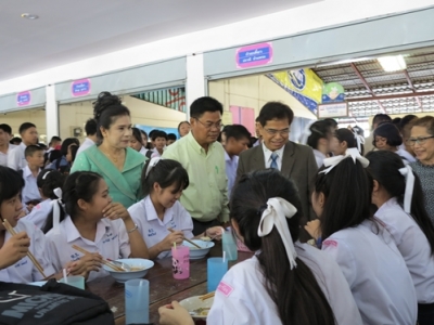 นายสุชน วิเชียรสรรค์ รองผู้อำนวยการสำนักงานเขตพื้นที่การศึกษามัธยมศึกษา เขต 39 พร้อมด้วย นายพรต ธนาเอกภิญโญ รองผู้อำนวยการโรงเรียน กลุ่มงานบริหารทั่วไป และคุณครู นงนุช ยาคล้าย หัวหน้างานโภชนาการโรงเรียน ได้ตรวจเยี่ยมและกวดขันผู้จำหน่ายอาหารปรุงสำเร็จในโรงเรียนจ่านกร้อง ตามที่ สำนักงานคณะกรรมการการศึกษาขั้นพื้นฐาน ได้มีหนังสือถึงสำนักงานเขตพื้นที่การศึกษาทั่วประเทศ ให้กำกับดูแลราคาจำหน่ายอาหารสำเร็จรูปในราคาที่เหมาะสมและเป็นธรรม ในช่วงเปิดภาคเรียนในปีการศึกษาใหม่ เพื่อช่วยลดภาระค่าใช้จ่ายของนักเรียนและผู้ปกครอง ซึ่งพบว่า ร้านค้าที่จำหน่ายข้าวราดแกง อาหารจานเดียว หรือก๋วยเตี๋ยว จำหน่ายในราคาต่ำสุด 20 บาท แต่ให้ปริมาณที่มากพอสำหรับนักเรียนที่จะรับประทานได้อิ่มอย่างพอดี และนักเรียนส่วนมาก พึงพอใจกับราคาและปริมาณอาหารที่ได้รับ ภาพ/ข่าว : พรทิพย์ แสงแก้ว
