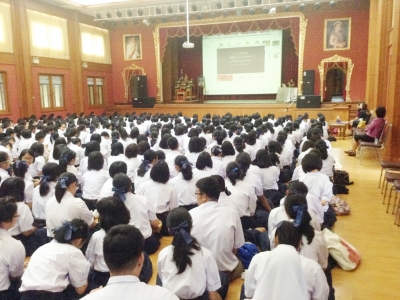คณะครูฝ่ายบริหารงานบุคลากร โรงเรียนเฉลิมขวัญสตรี จัดกิจกรรมแสงส่องใจ(อดเปรี้ยวไว้กินหวาน) สำหรับนักเรียนระดับชั้นมัธยมศึกษาปีที่่ 4 ประจำปีการศึกษา 2557 ได้รับเกียรติจาก ดร.จิตราภรณ์ ใยศิลป์ ผู้อำนวยการโรงเรียนเฉลิมขวัญสตรี เป็นประธานในพิธีเปิด เพื่อเป็นการเตรียมความพร้อมสำหรับนักเรียนในการดำรงชีวิตอย่างมีความสุขและพ้นภัยอันตรายต่าง ๆ ได้รับความอนุเคราะห์วิทยากรจากสถานีตำรวจภูธรจังหวัดพิษณุโลก,วิทยากรจากบ้านพักเด็กและครอบครัวจังหวัดพิษณุโลก ที่มาให้ความรู้เกี่ยวกับการป้องกันการถูกล่อลวงจากภัยต่างๆ ในสังคมปัจจุบัน เมื่อวันที่่ 3 พฤษภาคม 2557 ณ หอประชุมราชานุเคราะห์ 3 โรงเรียนเฉลิมขวัญสตรี (ภาพ:กีรติ/ข่าว:ประชาสัมพันธ์)