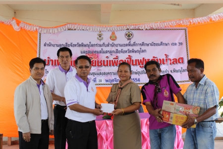 | อาทิตย์ที่ 20 พฤศจิกายน 2554 ส่งข่าวโดย: กลุ่มงานประชาสัมพันธ์ หัวข้อข่าว : Big Cleaning Day ฟื้นฟูโรงเรียนวัดวังแร่ อ.บางระกำ จ.พิษณุโลก วันที่ 20 พฤศจิกายน 2554 เวลา 09:00 น. ดร.สมเกียรติ บุญรอด ผู้อำนวยการสำนักงานเขตพื้นที่การศึกษามัธยมศึกษา เขต 39 ในนามประธานคณะกรรมการและกรรมการให้ความช่วยเหลือผู้ประสบอุทกภัยในระดับจังหวัดพิษณุโลก นำคณะผู้บริหาร ข้าราชการครูและบุคลากรทางการศึกษา ร่วมลงพื้นที่ช่วยเหลือฟื้นฟูโรงเรียนที่ได้รับความเสียหาย จากการประสบอุทกภัยบริเวณน้ำท่วมขังนาน ณ โรงเรียนชุมแสงสงคราม (อุดรคณารักษ์) อ.บางระกำ จ.พิษณุโลก และกล่าวรายงานวัตถุประสงค์การจัดงานต่อประธานในพิธี โดยได้รับเกียรติจากพลตรีบรรยง สีรสุนทร รองผู้อำนวยการรักษาความมั่นคงภายในจังหวัดพิษณุโลก เป็นประธานในพิธี คณะผู้บริหารสถาบันการศึกษา กระทรวงศึกษาธิการ ในจังหวัดพิษณุโลก ที่มาร่วมงาน Big Cleaning Day ฟื้นฟูหลังน้ำลด ประกอบด้วย ศ.ดร.สุจินต์ จินายน อธิการบดีมหาวิทยาลัยนเรศวร , ดร.สว่าง ภู่พัฒน์วิบูลย์ อธิการบดีมหาวิทยาลัยราชภัฏพิบูลสงคราม, อธิการบดีมหาวิทยาลัยเทคโนโลยีราชมงคลล้านนา พิษณุโลก , นางยุพิน บัวคอม