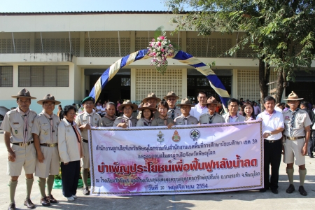 วันที่ 20 พฤศจิกายน 2554 เวลา 09:00 น. ดร.สมเกียรติ บุญรอด ผู้อำนวยการสำนักงานเขตพื้นที่การศึกษามัธยมศึกษา เขต 39 ในนามประธานคณะกรรมการและกรรมการให้ความช่วยเหลือผู้ประสบอุทกภัยในระดับจังหวัดพิษณุโลก นำคณะผู้บริหาร ข้าราชการครูและบุคลากรทางการศึกษา ร่วมลงพื้นที่ช่วยเหลือฟื้นฟูโรงเรียนที่ได้รับความเสียหาย จากการประสบอุทกภัยบริเวณน้ำท่วมขังนาน ณ โรงเรียนชุมแสงสงคราม (อุดรคณารักษ์) อ.บางระกำ จ.พิษณุโลก โดยได้รับเกียรติจากพลตรีบรรยง สีรสุนทร รองผู้อำนวยการรักษาความมั่นคงภายในจังหวัดพิษณุโลก เป็นประธานในพิธี /จุฑากุล : ภาพ , พรทิพย์ : ข่าว