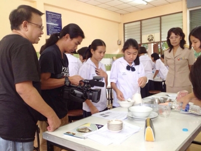 วันที่่ 16 มิถุนายน 2557 ดร.จิตราภรณ์ ใยศิลป์ ผู้อำนวยการโรงเรียนเฉลิมขวัญสตรี พร้อมด้วยคณะกรรมการบริหารโรงเรียน คณะครูและนักเรียนโรงเรียนเฉลิมขวัญสตรี ให้การต้อนรับคณะเจ้าหน้าที่จากช่อง 9 ที่มาบันทึกเทปศูนย์แนะแนวต้นแบบ โรงเรียนเฉลิมขวัญสตรี สำนักงานเขตพื้นที่การศึกษามัธยมศึกษา เขต 39 ในการขับเคลื่อนยุทธศาสตร์เพิ่มสัดส่วนเรียนต่อสายอาชีพ โดยโรงเรียนเฉลิมขวัญสตรี ได้จัดกิจกรรมการเรียนการสอนส่งเสริมการศึกษาสายอาชีพและเป็นแนวทางในการประกอบอาชีพสำหรับนักเรียน เช่น ศูนย์สาธิตการขาย(คหกรรม) งานผ้า งานประดิษฐ์ งานอาหาร การจัดสวนแก้ว งานเกษตร สำหรับการบันทึกเทปในวันนี้จะนำออกอากาศรายการ "บ่ายนี้มีคำตอบ" ทางช่อง 9 วันอังคารที่่ 24 มิถุนายน 2557 เวลา 14.05-14.50 น. (ภาพ:จิราภรณ์,อดิเรก/ข่าว:ประชาสัมพันธ์)