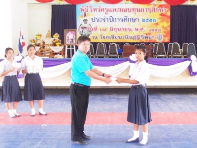 หัวข้อข่าว : โรงเรียนเนินกุ่มวิทยาจัดพิธีไหว้ครู และมอบทุนการศึกษา ประจำปีการศึกษา 2557