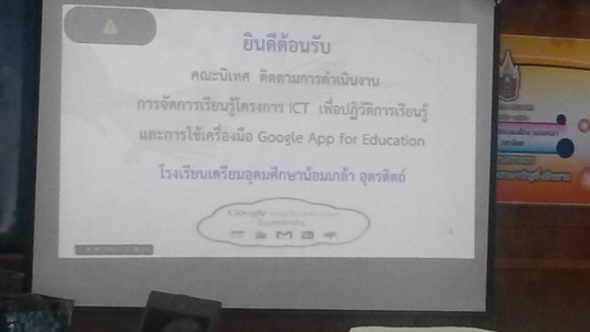 คณะนิเทศ สพม.39 นิเทศติดตาม โครงการพัฒนารูปแบบ ict เพื่อปฏิวัติการเรียนรู้ ณ โรงเรียนเตรียมอุดมศึกษาน้อมเกล้า อุตรดิตถ์ นำทีมโดย ท่านรองฯ ณุกูล เดือนหงาย และคณะ มีคณะครู เข้าร่วม รับการนิเทศ เกิน 50 คน คุณครู นำเสนอผลงาน การบูรณาการการพัฒนาความคิดสร้างสรรค์จากสิทธิบัตร และใช้เทคโนโลยีในการสอนผ่าน เครื่องมือ google apps for education มีคณะวิทยากร จากกูเกิล ร่วมนิเทศ ผ่าน แฮงเอาท์ พร้อมกับ อุตรดิตถ์ดรุณี
