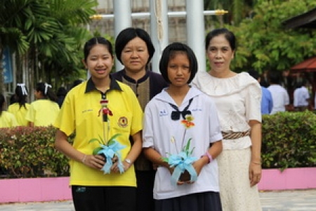 วันที่ 2 กรกฎาคม 2557 นางสุนันทา พานิชผล ผู้อำนวยการโรงเรียนพิชัย มอบดอกไม้และแสดงความยินดีกับนักเรียนที่ได้รับการคัดเลือกเข้ารอบ 40 คนสุดท้าย ระดับเทศ เข้าร่วมโครงการ ตามรอยพ่อ วิถีการเรียนรู้สู่ชุมชน ของจุฬาลงกรณ์มหาวิทยาลัย ในการเขียนเรียงความ เรื่อง คุณนำคำพ่อสอนเรื่องใดมาใช้ในชีวิตประจำวัน จำนวน 2 คน คือ นางสาวขวัญแก้ว ดาอ่ำ นักเรียนชั้น ม.3/1 และนางสาวช่อผกา มณีฉาย นักเรียนชั้นม.4/1 ซึ่งนักเรียนทั้งสองคน จะเดินทางเข้าร่วมกิจกรรมตามโครงการพระราชดำริ ระหว่างวันที่ 5 6 กรกฎาคม 2557 ณ โครงการชั่งหัวมัน ศูนย์สาธิตเกษตรโครงการหุบกะพง และอุทยาน สิ่งแวดล้อมนานาชาติสิรินธร ณ จังหวัดเพชรบุรี โดยมีครูสุมาลี โสดจำปา และครูสุจินดา มีรอด เป็นครูที่ปรึกษาและควบคุมดูแล