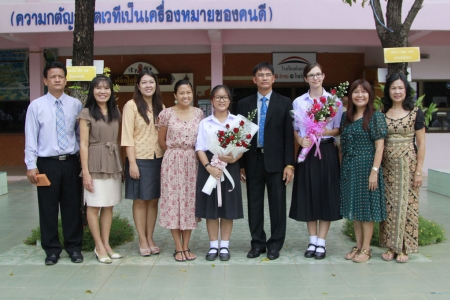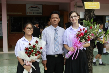 ผู้อำนวยการวิโรจน์ รอดสงฆ์ และคณะครูกลุ่มสาระการเรียนรู้ภาษาต่างประเทศ โรงเรียนเตรียมอุดมศึกษา ภาคเหนือ มอบช่อดอกไม้แสดงความยินดีกับ Ms. Lea Elizabeth Hinterholzer นักเรียนแลกเปลี่ยน YFU จากประเทศเยอรมันเข้ามาศึกษาในระดับชั้นมัธยมศึกษาตอนปลาย โรงเรียนเตรียมอุดมศึกษา ภาคเหนือ เป็นเวลา ๑ ปีการศึกษา และต้อนรับนางสาวนภัสสร นางแสน นักเรียนระดับชั้นมัธยมศึกษาปีที่ ๖.๑๐ นักเรียนโครงการแลกเปลี่ยน AFS กลับจากการไปศึกษาต่อในประเทศจีน เป็นระยะเวลา ๑ ปี เมื่อวันที่ ๗ กรกฎาคม ๒๕๕๗//ผู้ส่งข่าว:อ้อยทิพย์ ฉิมบ้านไร่