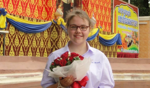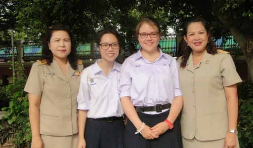 วันที่ 7 กรกฎาคม 2557 ดร.จิตราภรณ์ ใยศิลป์ ผู้อำนวยการโรงเรียนเฉลิมขวัญสตรี เป็นตัวแทนคณะครูและนักเรียนโรงเรียนเฉลิมขวัญสตรี กล่าวต้อนรับและมอบช่อดอกไม้ให้แก่ Ms. Julia Esser ชื่อไทย น้ำฝึ้งนักเรียนแลกเปลี่ยนโครงการเอเอฟเอสจากประเทศเยอรมนี ศึกษาและแลกเปลี่ยนวัฒนธรรม ณ โรงเรียนเฉลิมขวัญสตรี เป็นเวลา 1 ปี ตั้งแต่วันที่ 5 กรกฎาคม 2557 ถึงวันที่ 16 พฤษภาคม 2558 โดยมีคุณอนงค์ จิราพงษ์ ข้าราชการบำนาญ โรงเรียนวังทองพิทยาคม อำเภอวังทอง จังหวัดพิษณุโลก และเป็นผู้ปกครองของนักเรียนซึ่งเป็นศิษย์เก่าโรงเรียนเฉลิมขวัญสตรี รับเป็นครอบครัวอุปถัมภ์ คุณครูวันเพ็ญ ม่วงสีเมืองดี เป็นครูที่ปรึกษา พวกเราชาวเฉลิมขวัญสตรี ขอต้อนรับสมาชิกใหม่ น้ำผึ้ง ด้วยความยินดีเป็นอย่างยิ่ง (ภาพ:ศิริรัตน์/ข่าว:ประชาสัมพันธ์)