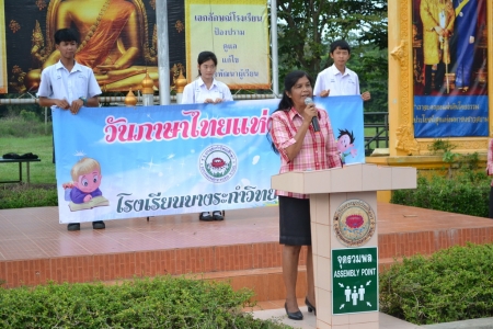 วันที่ 29 กรกฎาคม 2557 กลุ่มสาระการเรียนรู้ภาษาไทย โรงเรียนบางระกำวิทยศึกษาจัดกิจกรรม วันภาษาไทยแห่งชาติ ขึ้น ตัวแทนนักเรียนได้ให้ความรู้เกี่ยวกับภาษาไทย ความสำคัญของการใช้ภาษาไทย ผ่านบทกลอนที่ไพเราะ เพื่อปลุกจิตสำนึกของของนักเรียนให้ตระหนักถึงความสำคัญและคุณค่าของภาษาไทย ตลอดจนร่วมมือร่วมใจกันทำนุบำรุงส่งเสริมและอนุรักษ์ภาษาไทย ซึ่งเป็นเอกลักษณ์และเป็นสมบัติวัฒนธรรมอันล้ำค่าของชาติให้คงอยู่คู่ชาติไทยตลอดไป ในโอกาสนี้ นายธีรพัฒน์ ดีเทอดเกียรติ ผู้อำนวยการโรงเรียน ได้มอบเกียรติบัตรให้แก่นักเรียนที่ใช้ภาษาไทยเป็นตัวอย่างที่ดีและให้ข้อคิดแก่นักเรียนในการใช้ภาษาไทยในชีวิตประจำวัน
